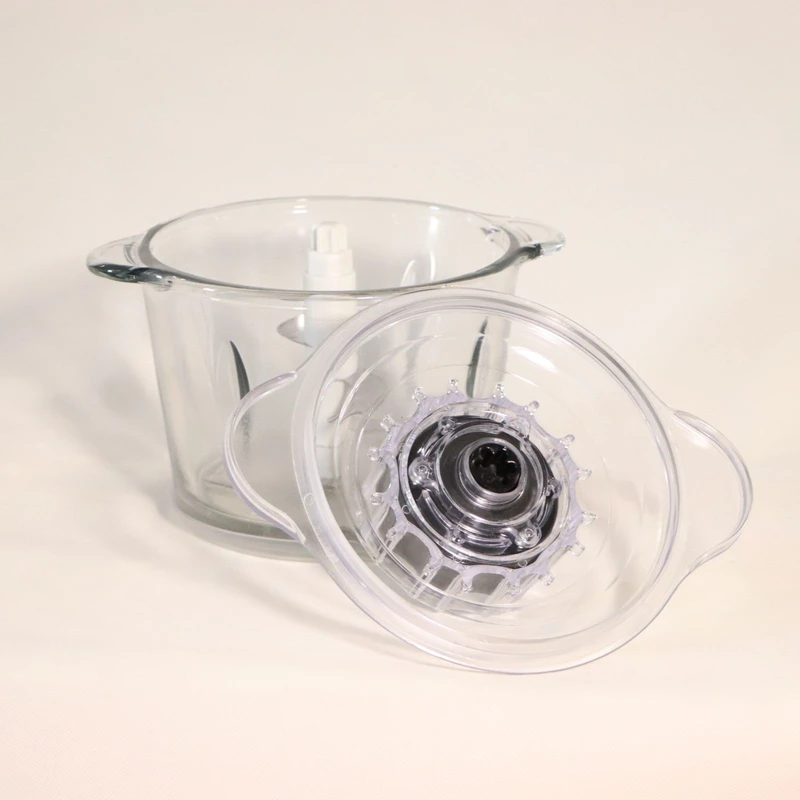 این دستگاه کاملا بی نظیر و بی رقیب تمام نیازهای اصلی شما را در خانه و امور آشپزی رفع میکند. با این دستگاه سه کاره شما یک خردکن 3.3 لیتری برای خرد کردن انواع گوشت ، سبزیجات ، صیفی جات ، یخ ، میوه یخ زده ، پیاز و … یک دستگاه آسیاب حرفه ای خانگی ادویه مثل دارچین و زردچوبه و… و یک دستگاه مخلوط کن 1.3 لیتری برای درست کردن انواع دسر دارید! به همین جا ختم نمیشود! حتما ادامه توضیحات را مشاهده کنید تا از جزئیات بی نظیر این دستگاه چندکاره مطلع شوید. مخزن همانطور که میدانید، مخزن های با جنس پیرکس به دلیل کیفیت و زیبایی خاص در بین ایرانیان بسیار جا افتاده و محبوب میباشند. خردکن این محصول دارای یک مخزن 3.3 لیتری از جنس پیرکس آب دیده و مقاوم میباشد. تیغه و پایه تیغه تیغه خردکن این دستگاه شش پره بوده که از کیفیت بسیار بالایی برخوردار است. تیغه از جنس فنر فولاد و استاینلس استیل لیزری با ویژگی های بارز نشکن بودن، ضد زنگ با قابلیت تیزشوندگی مجدد است. پایه تیغه این خردکن کاملا نشکن و ضد هرز شوندگی میباشد. درب خردکن درب خردکن از جنس پلی کربنات نشکن و مقاوم و شفت های ضد هرز شوندگی و دارای نوار لرزه گیر مخزن و نوار آب بندی روی دستگاه است. کارایی این خردکن توان خرد کردن نیم کیلو مرغ و گوشت در هر بار و همچنین خرد کردن انواع سبزیجات و صیفی جات ، انواع میوه ، یخ ، پیاز و … را دارد. قابلیت های آسیاب آسیاب این دستگاه یک مخزن از جنس پیرکس آب دیده با ظرفیت 300 سی سی دارد. یک تیغه فولادی و کاملا نشکن این دستگاه را از سایر محصولات مشابه متمایز میکند که قابلیت آسیاب انواع ادویه مثل زردچوبه، دارچین و … را دارد. مخلوط کن مخلوط کن این محصول یک پارچ از جنس پیرکس آب دیده و مقاوم با ظرفیت 1.3 لیتر دارد که با وجود تیغه های فولادی و بسیار بسیار مقاوم و شفت های ضد سایش امکان مخلوط کردن انواع دسر، معجون و شیک با میوه های یخ زده را داراست. موتور و کلاهک قسمت کلاهک این دستگاه با روکش استیل دارای یک موتور یونیورسال با دو حالت دور کم و زیاد است.(دور کم و زیاد برای خردکن و دور زیاد برای آسیاب و مخلوط کن استفاده میشود). موتور دستگاه دارای سنسور موتور فشار و حرکتی است که در صورت داغ کردن یا تحت فشار قرار گرفتن، موتور خود به خود خاموش میشود و بعد از چند دقیقه شروع به کار میکند.